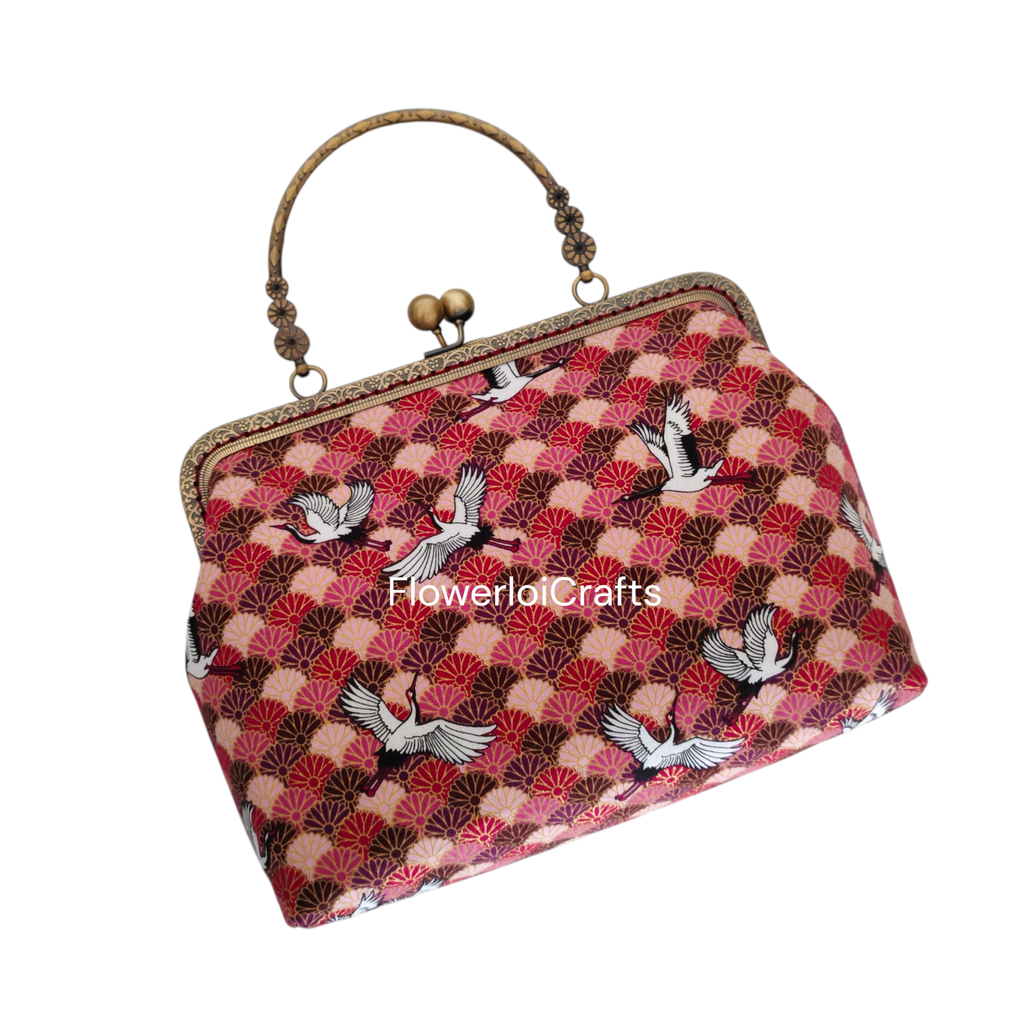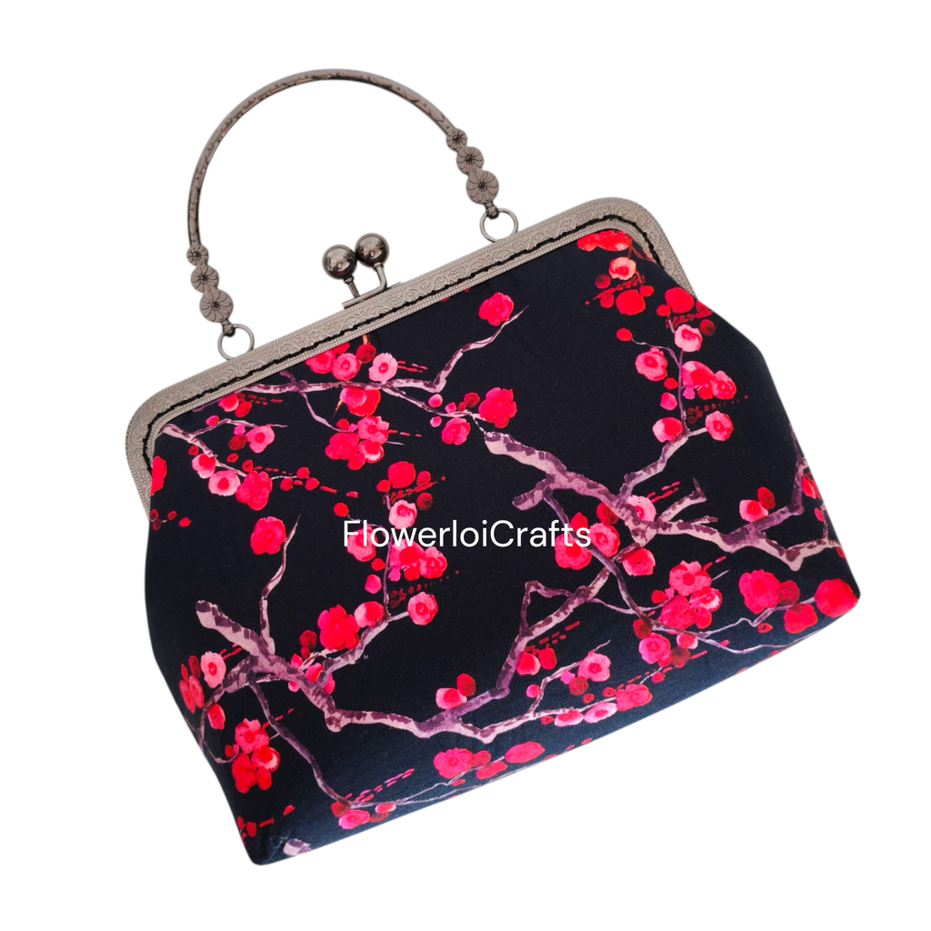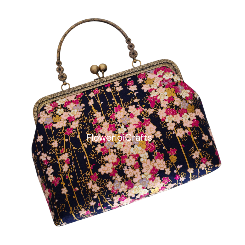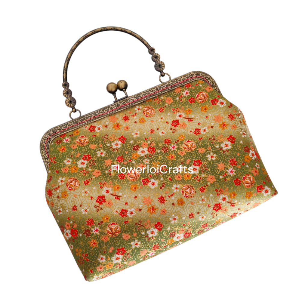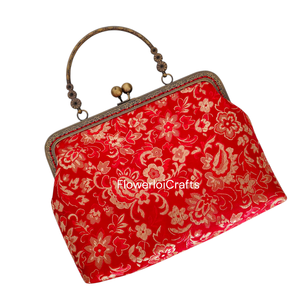 This kisslock framed bag is crafted in detail using beautiful fabrics and the body bag is handstitched securely to the metal frame. It comes with an inner open pocket. This bag can be styled as a hand carry bag or as a sling bag. The size of the bag is not too big and not too small, it is specially designed for those who love a simple yet elegant bag. It is enough to carry your essential items around; e.g handphone, power bank, keys, lipsticks, jewelry and name cards etc.